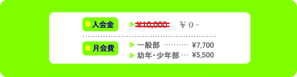 ※月謝は毎月27日に口座より引き落としされます。5ヶ月間滞納が続き、継続の意志が無いと判断された場合には退会処理となりますので、くれぐれもご注意下さい。